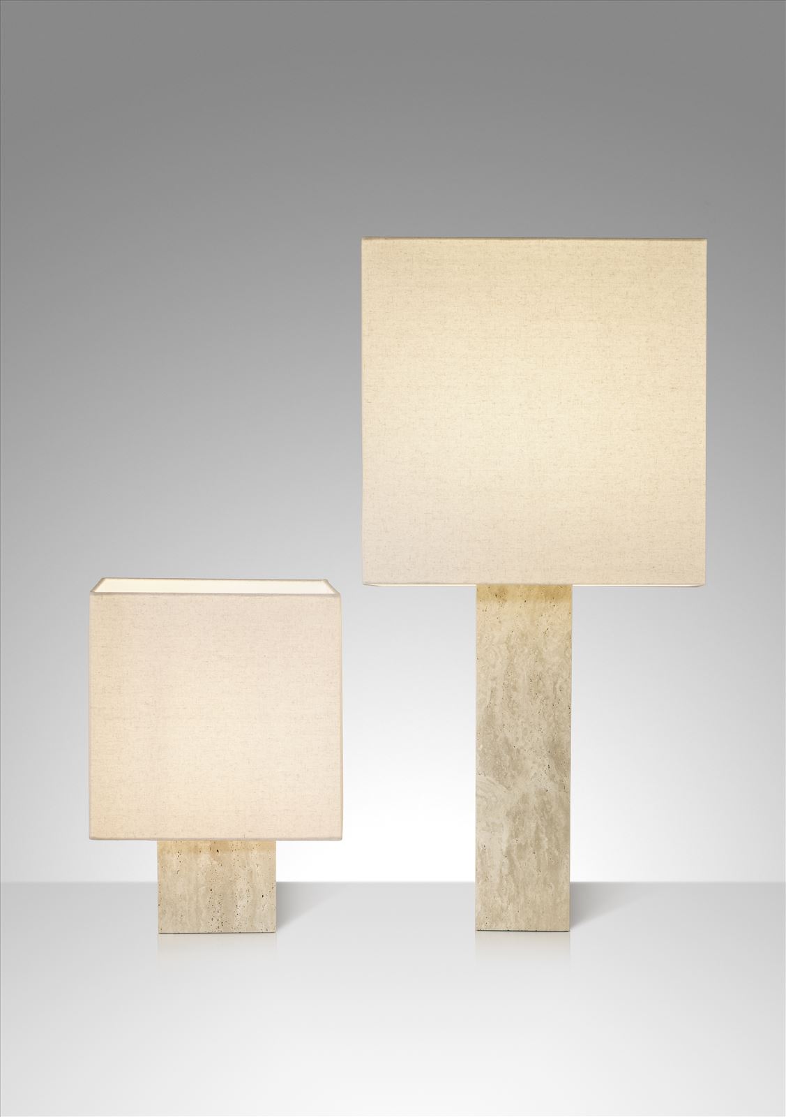 מנורת שולחן LOPEZ L אבן טרוונטין + אהיל בד מרובע לבן E-27